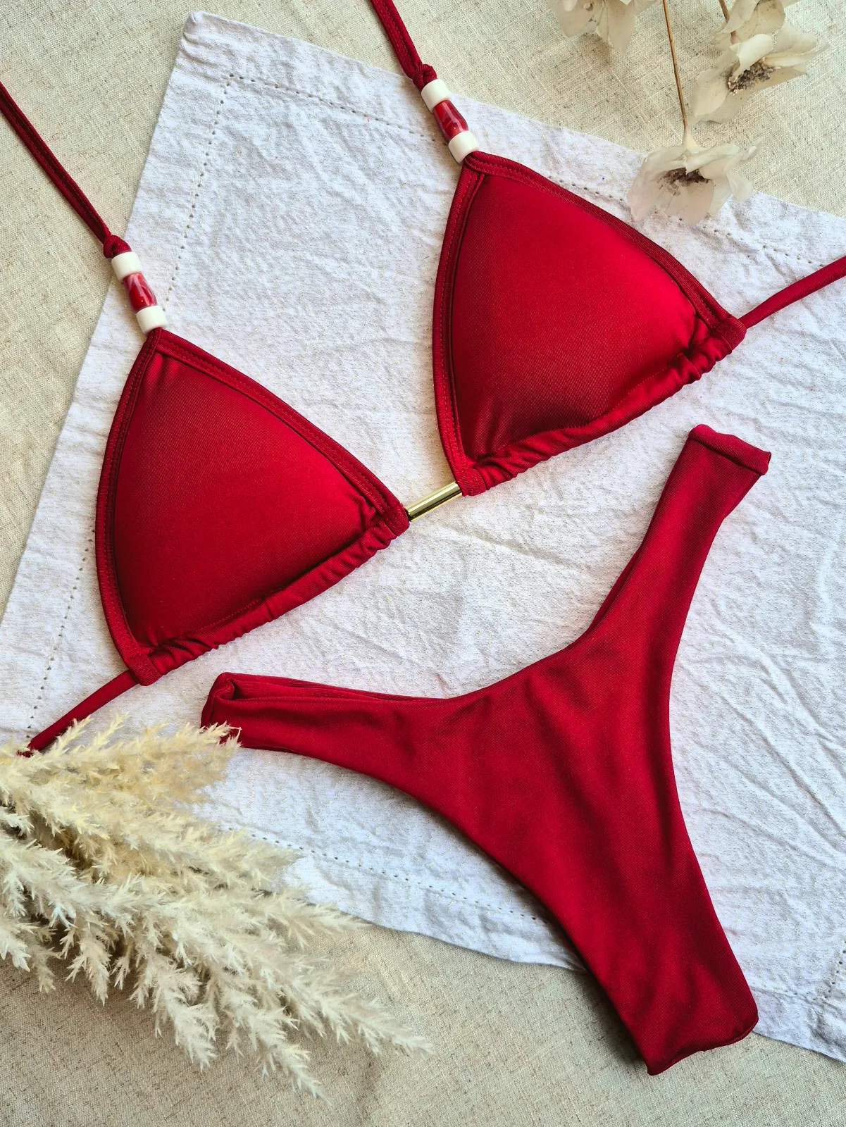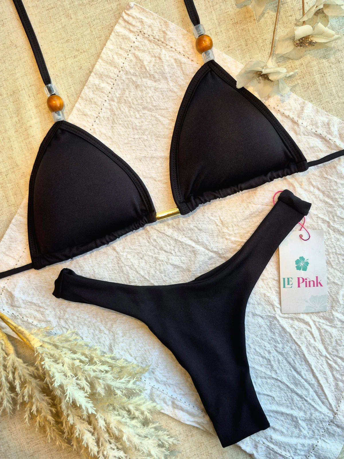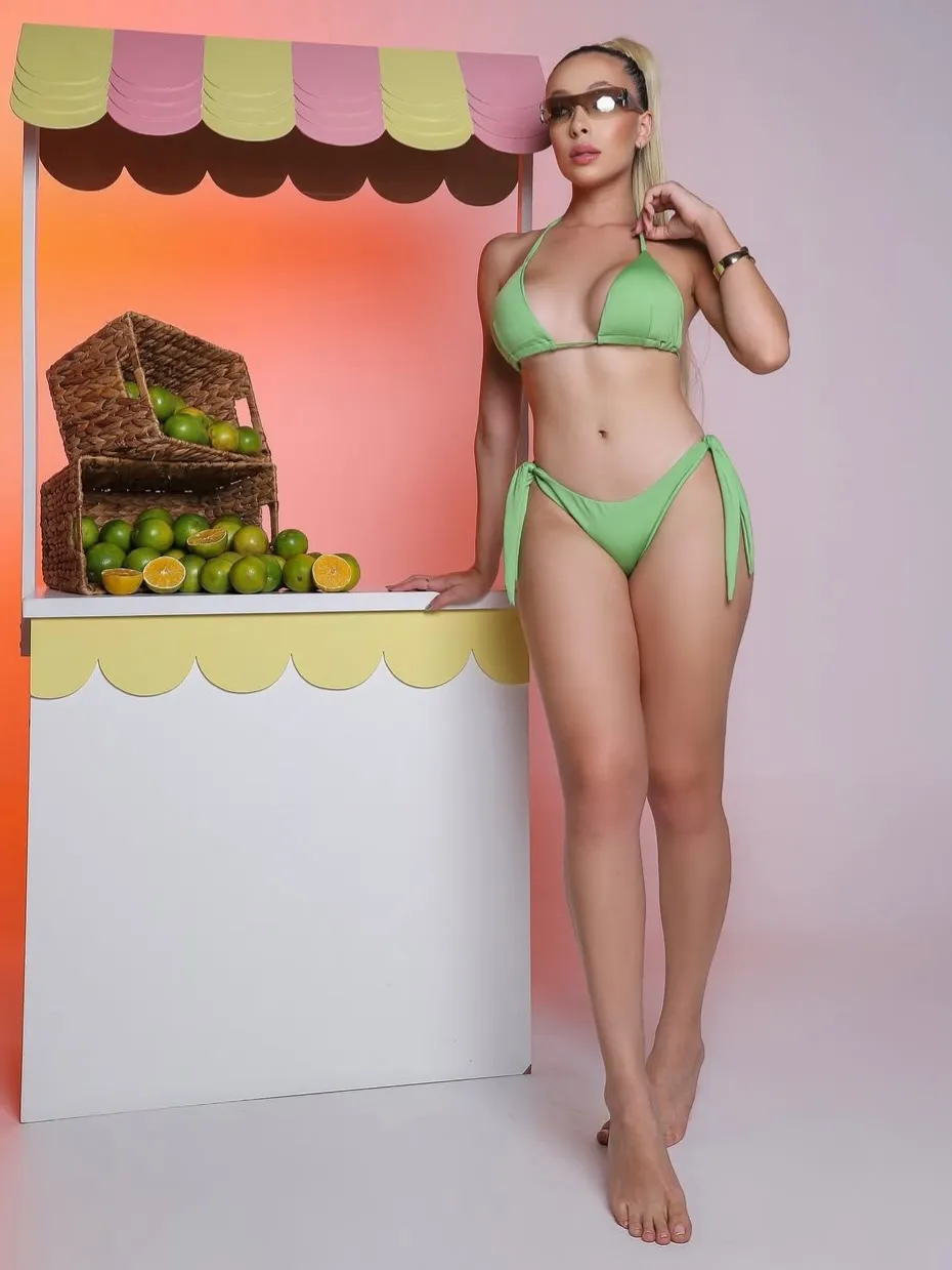 O Biquíni Gaby é a escolha ideal para quem quer unir estilo, conforto e sensualidade. O top com bojo garante maior sustentação e segurança, realçando o busto com naturalidade. A calcinha modelo asa delta alonga a silhueta e valoriza as curvas, criando um visual moderno e marcante. O charme extra fica por conta dos delicados detalhes em pedraria, que adicionam brilho e sofisticação à peça.